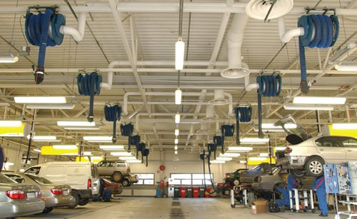 汽車尾氣抽排系統就是將尾排系統接管接至汽車排氣管,對車輛維修過程中產生的廢氣統一收集并過濾凈化處理后排放到室外,有效降低汽車尾氣顆粒物與異味,保護操作人員身體健康,控制對大氣的污染。廢氣通過排氣管到達耐高溫橡膠吸嘴再到達鋁合金主管道然后經過抽風機來到 PVC 管最后經環保處理裝置(含過濾棉、活性炭)通過抽風機實現汽車尾氣排放。